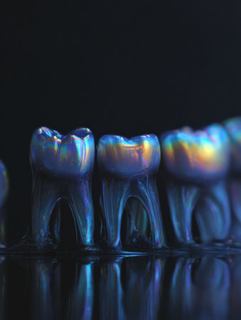 The pulsation and sensitivity of tooth enamel, highlighting its features through vibrant colors and a dark background.