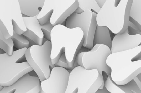White healthy teeth motion 3D rendering pattern on blue background. National Dentist's Day Digital molar tooth anatomy model. Wisdom teeth extraction Oral care recovery. Dental Insurance Clinic banner