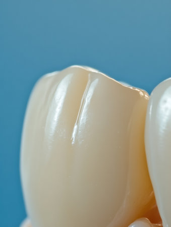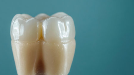 This image features a close-up view of a detailed dental model showcasing healthy human teeth. The glossy finish and smooth surface highlight the importance of dental care and aesthetics in oral health.