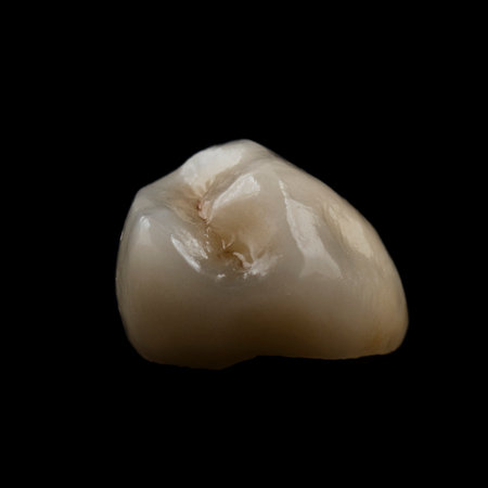 Dental crown of chewing tooth made of high quality ceramic on a black background.