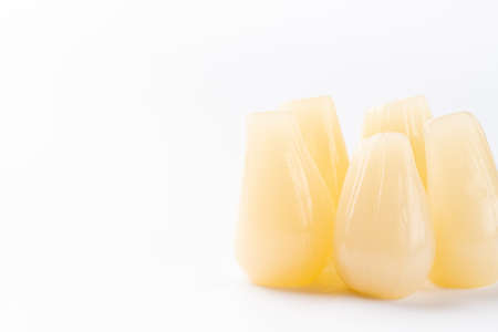 Artificial tooth, wax model on white background