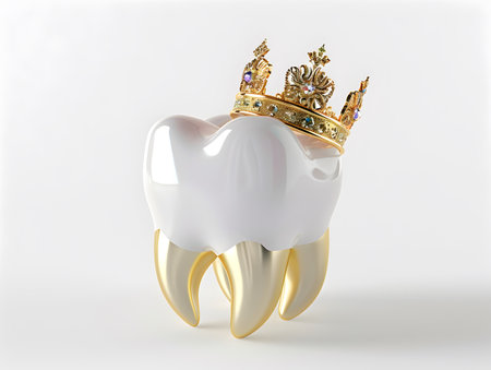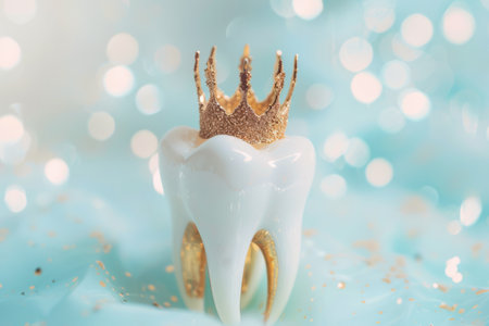 Regal Tooth with a Golden Crown Sparkling Amidst Bokeh Lights.