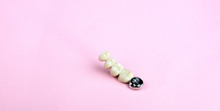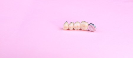 dental prosthesis on pink background