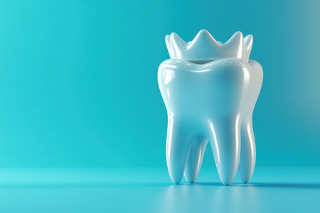 Snow white healthy tooth concept for dental care on a solid color background, dentistry theme