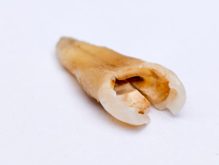 Close up view of affected tooth showcasing severe decay and its impact on dental health.