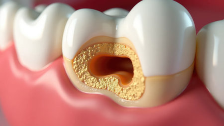 This detailed image shows a cross-section of a tooth's anatomy, highlighting areas affected by tooth decay and cavities. It is visually informative and crucial for understanding dental issues.