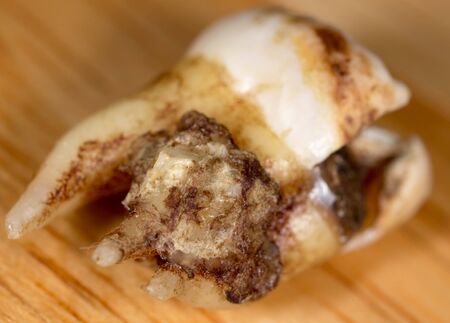 close up dirty decayed tooth from tooth extraction, dental tooht healthy.