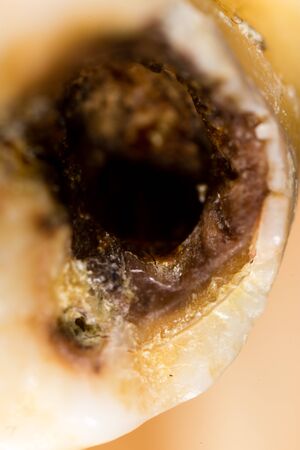 Tooth Decay macro photo, close up photo of cavity or dental caries on a tooth