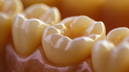 An AI generated illustration of a white tooth with internal structure exposed and visible