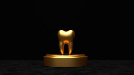 Dental macro photo of high quality crown, on black glass with reflection