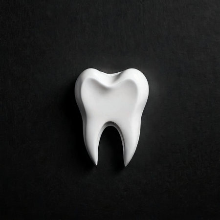 Black tooth shaped object symbolizing dental care.
