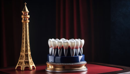 Model of teeth on color background