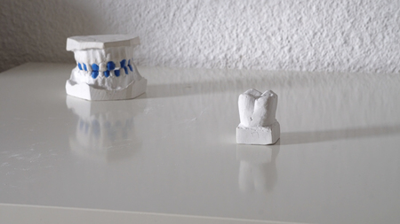 Closeup / Prosthodontics or Prosthetic / Tooth crown and bridge implant dentistry equipment and model express fix restoration.