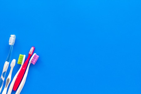 Clean teeth. Toothbrushes on blue background