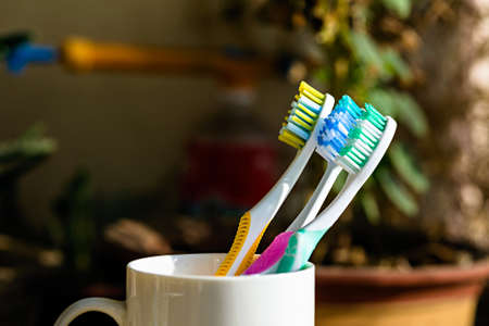 Three toothbrushes in a cup