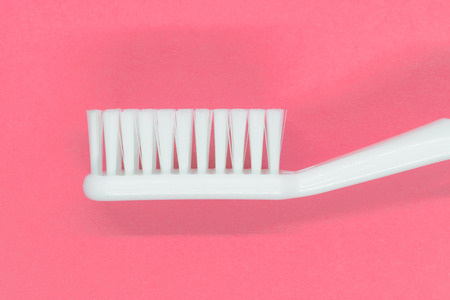 Side view of white toothbrush on pink background