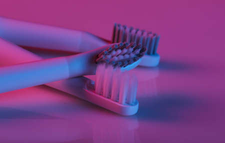 Toothbrush head with pink blue gradient neon light