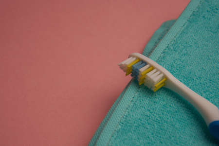 Toothbrush on pink background, close up. Dental care