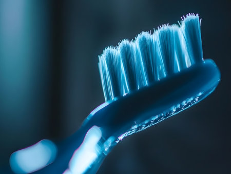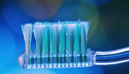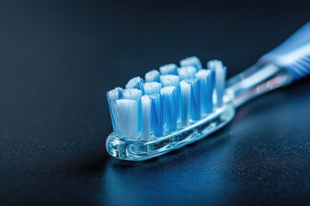 Bright blue bristles glisten as a toothbrush captivates attention with its design and purpose.