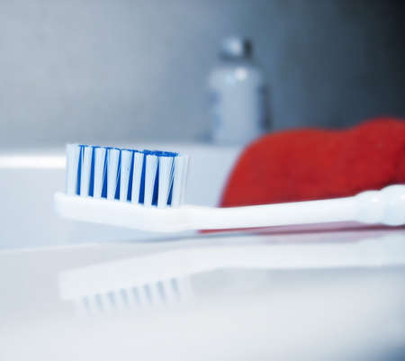 toothbrush in bathroom macro