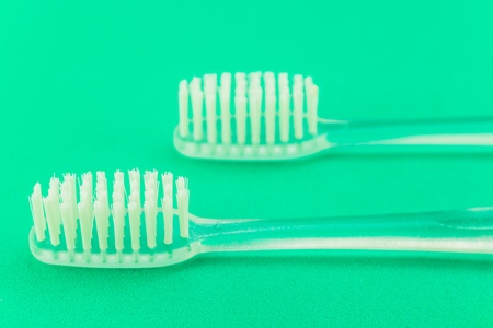 closeup of two toothbrushes