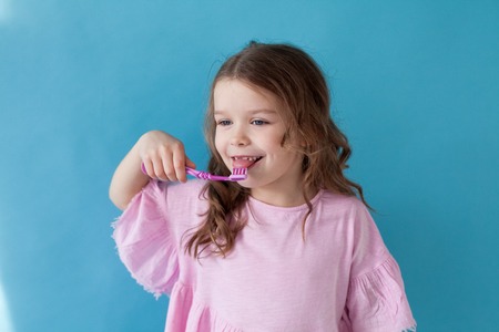 little girl cleans teeth toothbrush dent nice