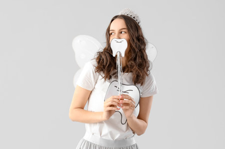 Tooth Fairy with wand on light background