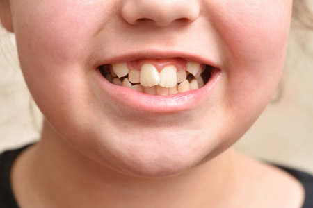 Malocclusion in the teeth of a child's mouth, incorrect teeth alignment