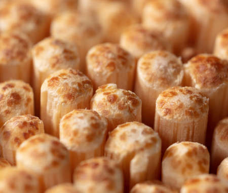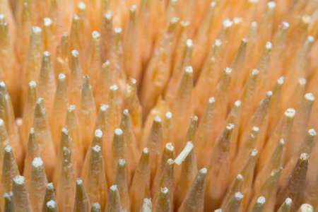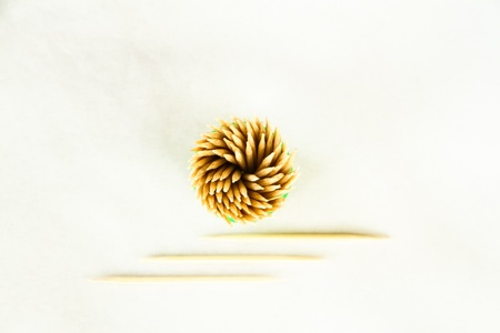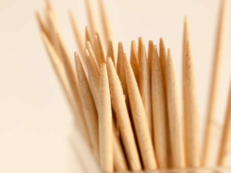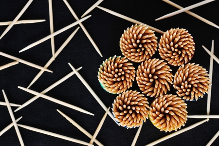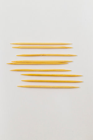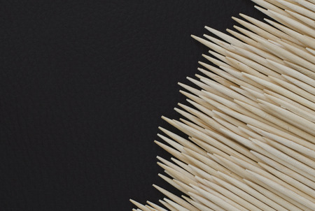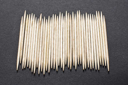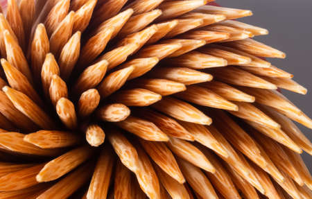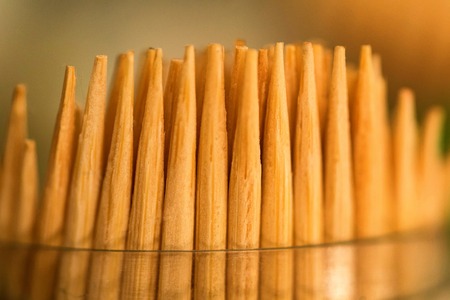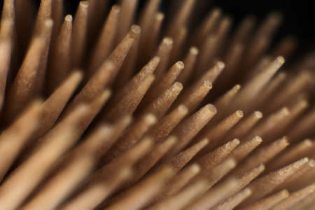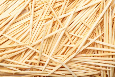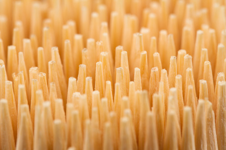 horizontal top view macro close up of wooden bamboo toothpicks pattern with selective focus