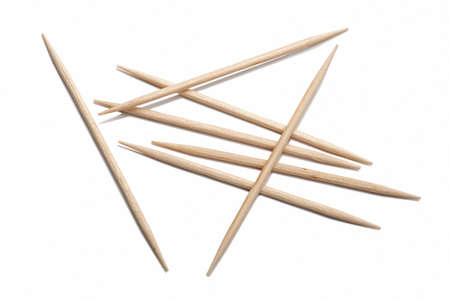 Set of stacked hygienic toothpicks. Natural wooden flat chopsticks isolated on white background.