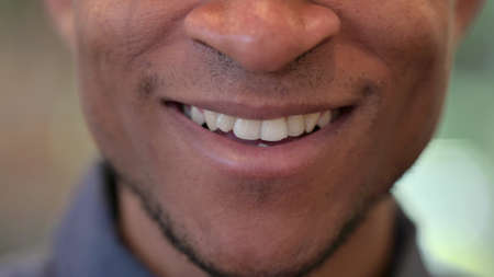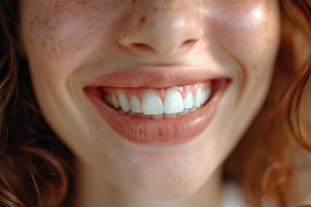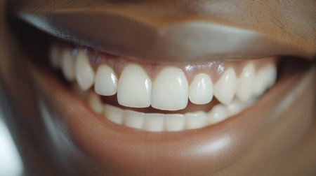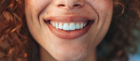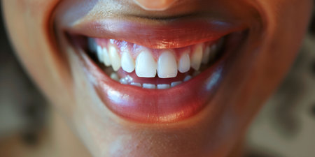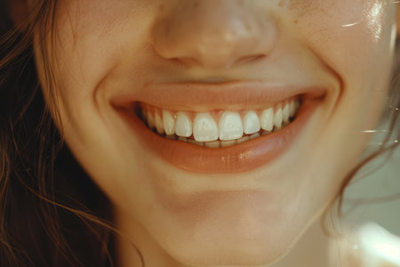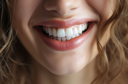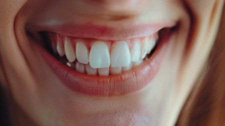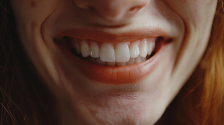 A macro shot capturing a person's smile, showing white teeth and healthy lips