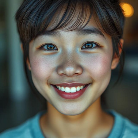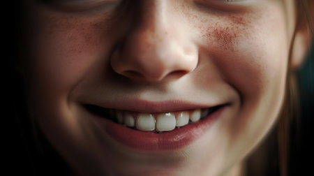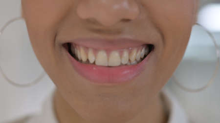 Closeup of a Smiling Girl's Face with Stained Teeth
