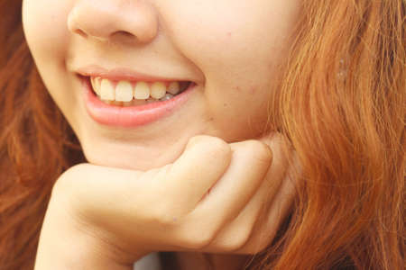 Perfect healthy teeth smile of a young woman. Teeth whitening. Dental clinic patient. Image symbolizes oral care dentistry, stomatology. Dentistry image.