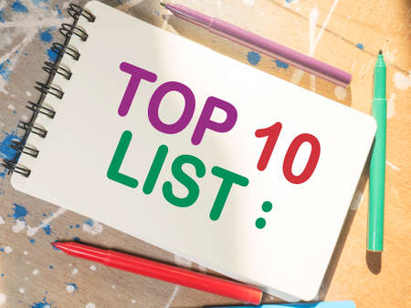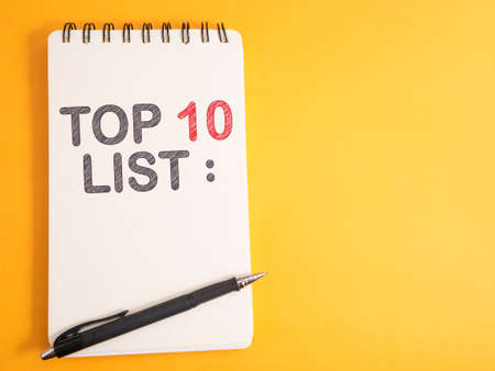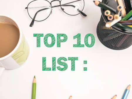 Top 10 List, business motivational inspirational quotes, words typography top view lettering concept