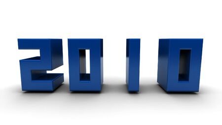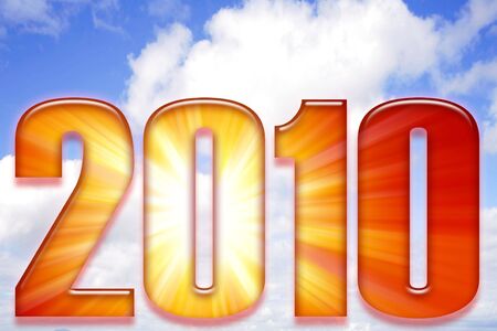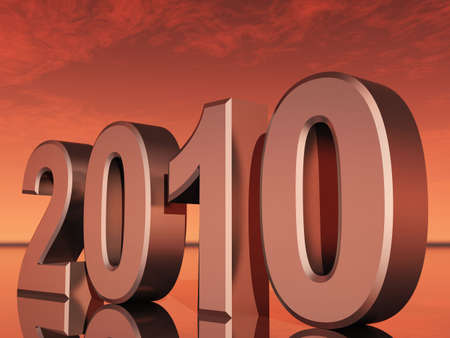 Inscription 2010 on a background of the martian sky, with reflection on a surface