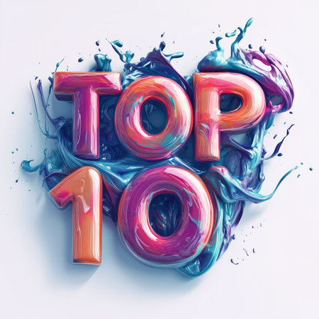Top 10 word made of colorful paint splashes. 3D Rendering