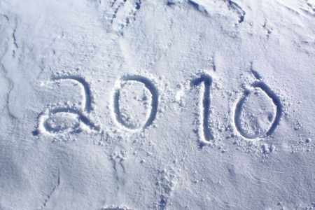 Inscription 2010 on sand. Sea coast with a rolling wave on an inscription