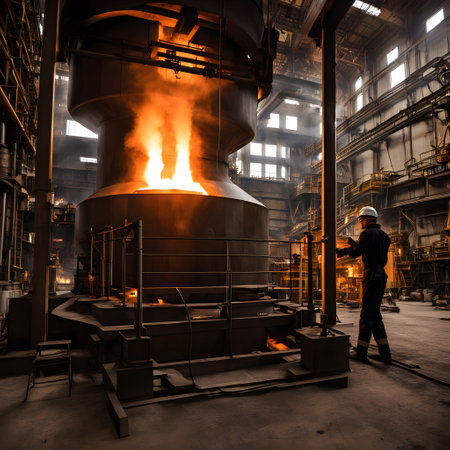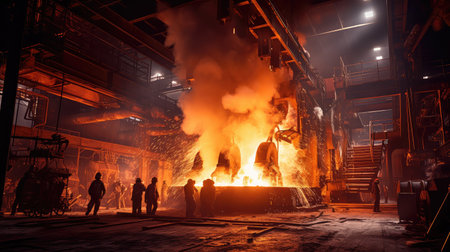 Industrial steel metallurgy metal heat iron factory foundry furnace people
