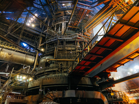 Blast furnace operation at a metallurgical plant. Steel industry.