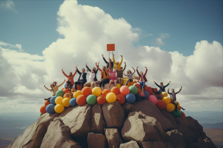 hikers on a top of a mountain. AI generated content