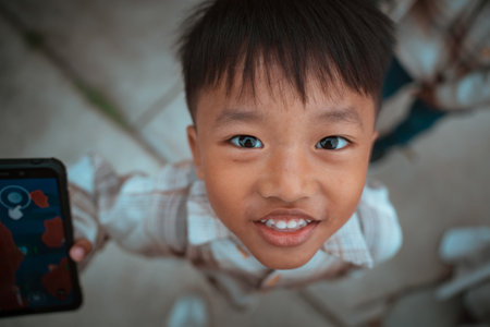 Portrait of a cute asian boy looking at the camera.
