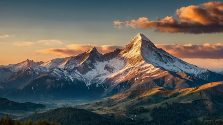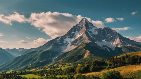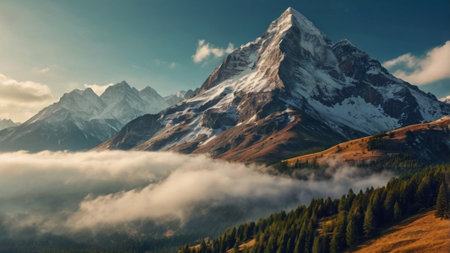 An AI generated illustration of majestic mountains revealing the majestic calm crisp beauty of nature