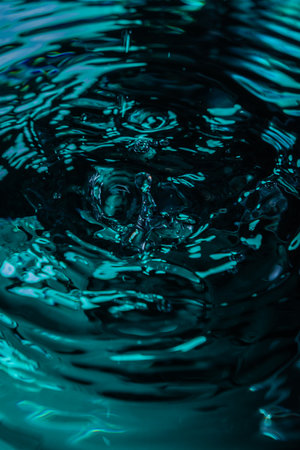 Water drop falling into the water. Splash effect after collision a falling drops with water Surface