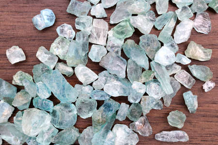 Aquamarine, a blue gem made of natural quartz found in geological crystals
