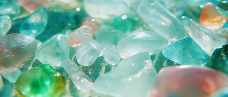 Vibrant sea glass collection showcasing unique textures and colors under sunlight
