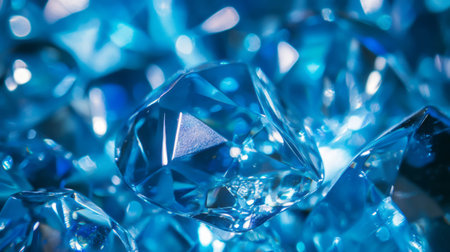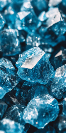 Close Up of Icy, Vibrant Blue Gemstones, Glistening and Reflecting with Shiny Texture