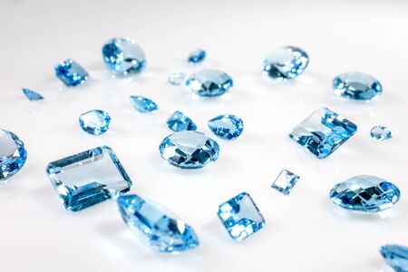sapphire of different sizes on a white frosted glass