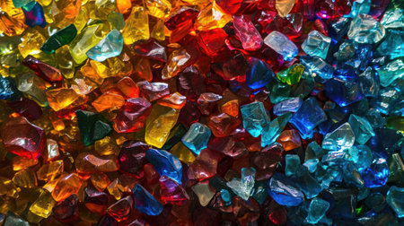 Colorful crystals of broken glass as background. Close-up.