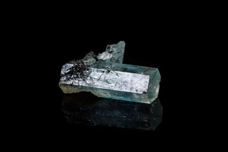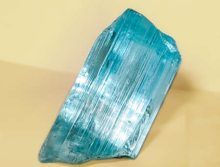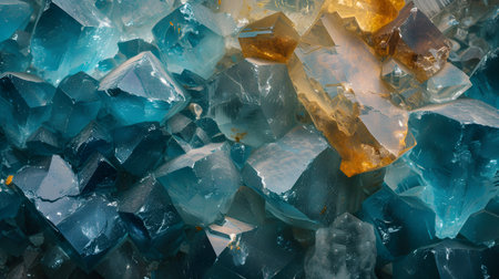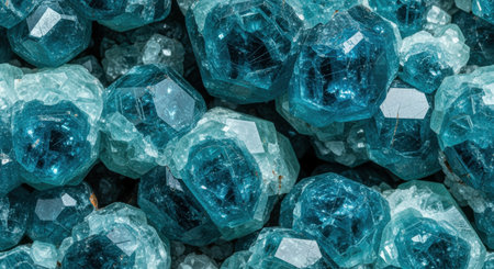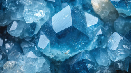 Close-up of lustrous aquamarine crystals, showcasing their geometric facets and rich blue hues. ideal for geological exploration or elegant decorative purposes, natural beauty and intricate detail. Generative AI
