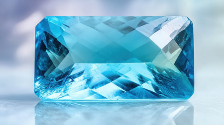 A stunning radiant blue gemstone beautifully captured in glimmering light, showcasing its exquisite cut and brilliance